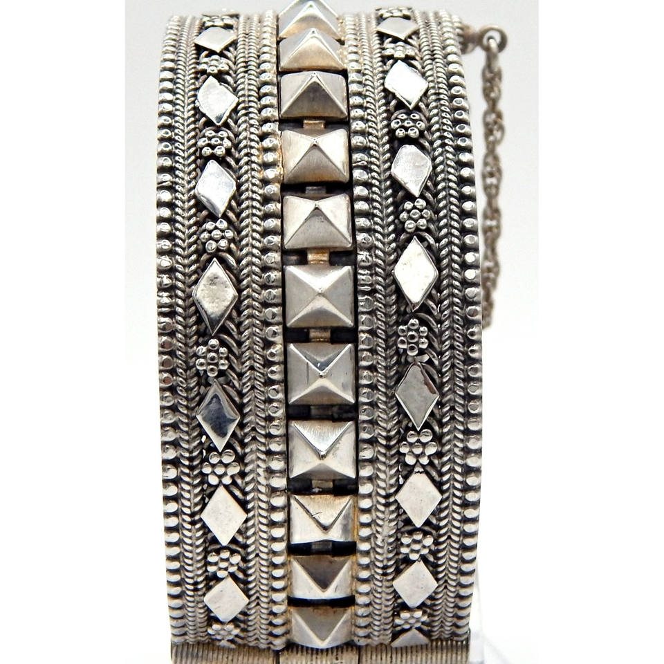 Heavy Israeli .925 Sterling Silver Art Deco Bangle Bracelet