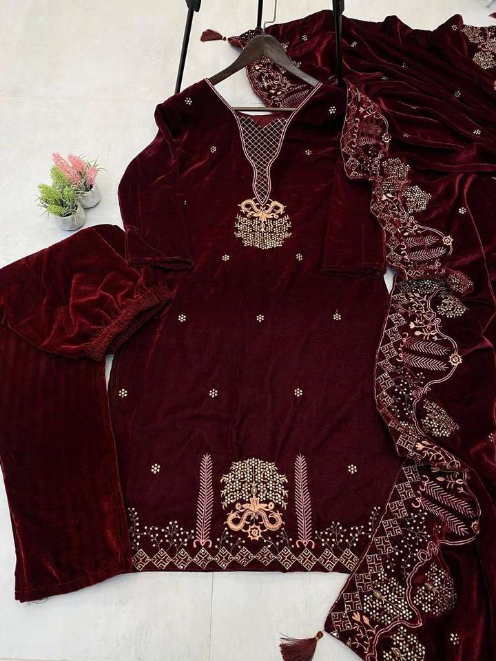 Product Name:Velvet Sequence Embroidered Top Pant And Dupatta