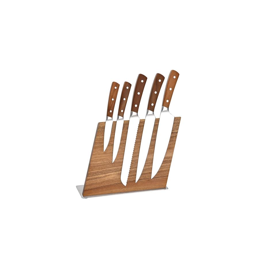 Heavy Steel Knife Block with Magnet Acacia Wood and Steel Base Knife Holder