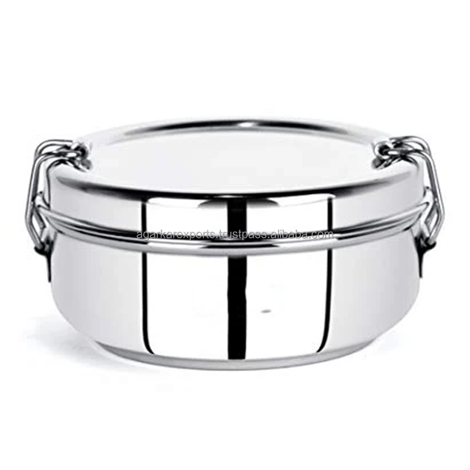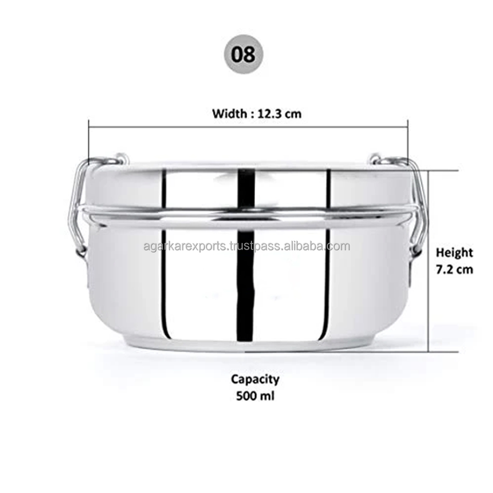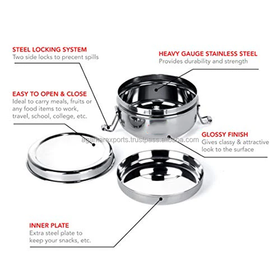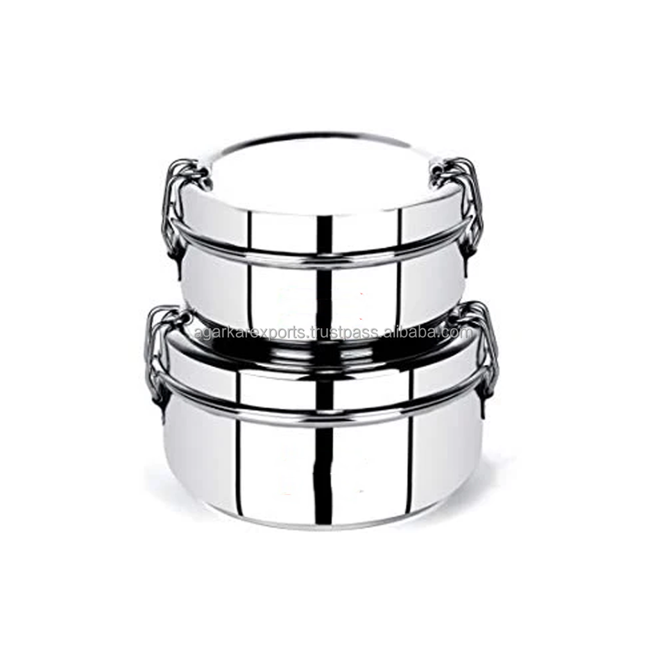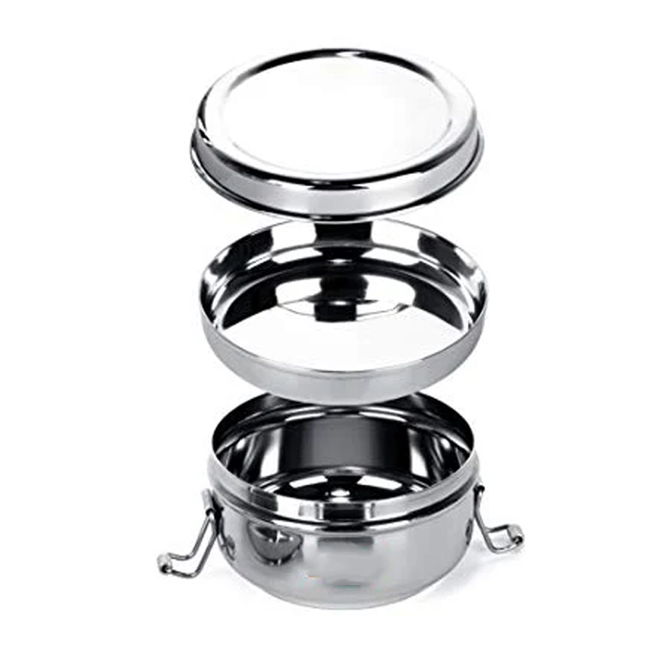 Heavy Thick Stainless Steel School Lunch Boxes Dual Tier 300ml Leak Proof Lightweight Easy to Clean Tiffin Meal Containers