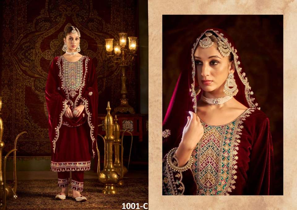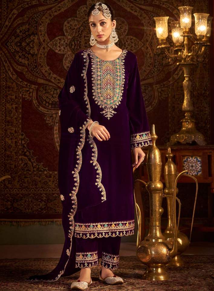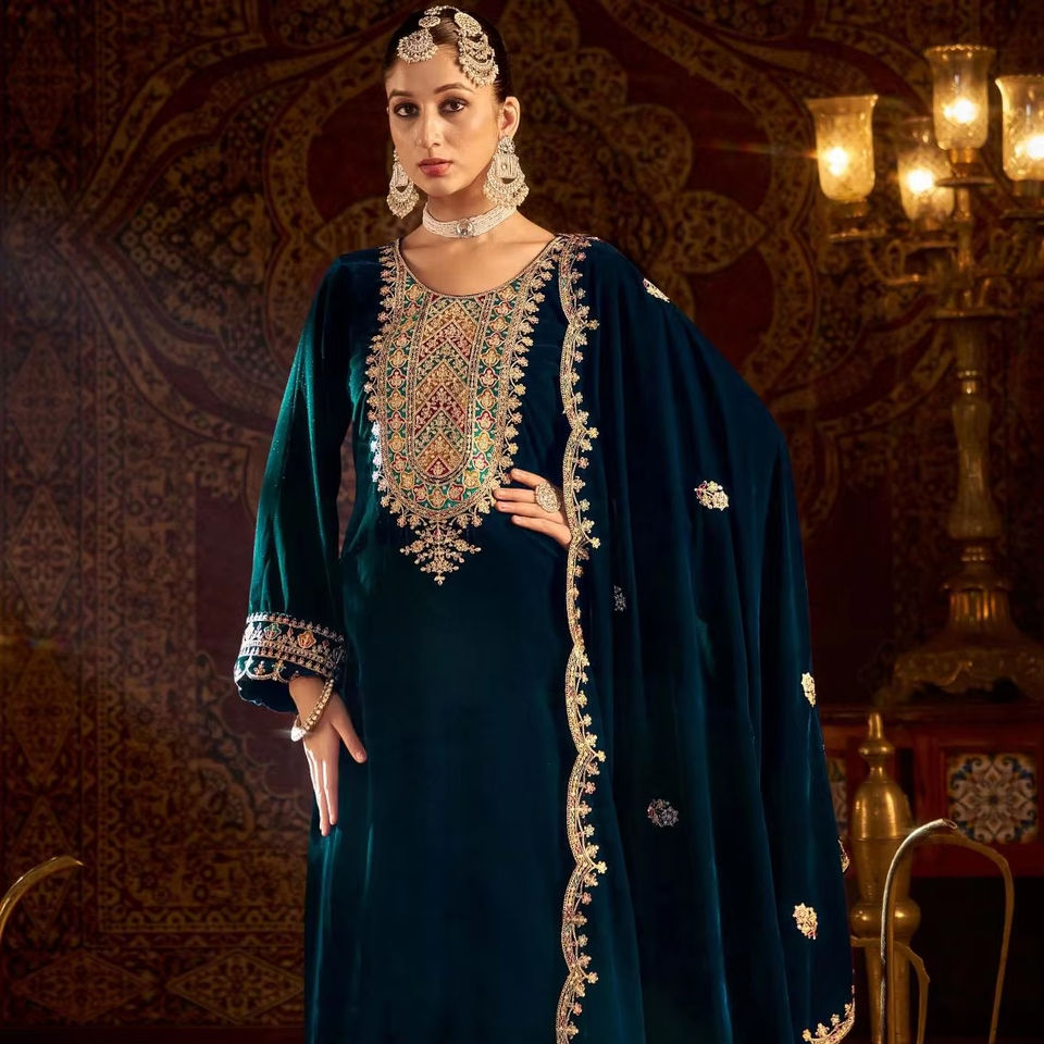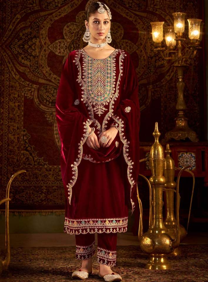 Product Name:Velvet Sequence Embroidered Top Bottom And Dupatta