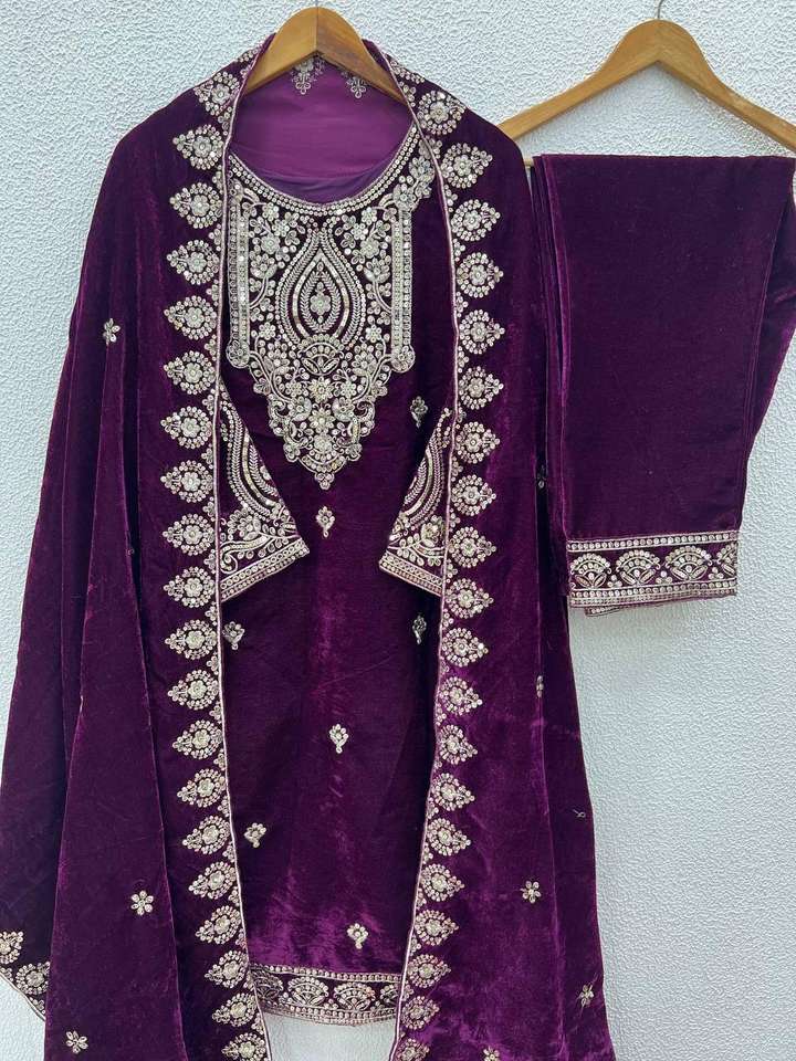 Product Name:Viscose Velvet Sequence Embroidered Top Bottom And Dupatta