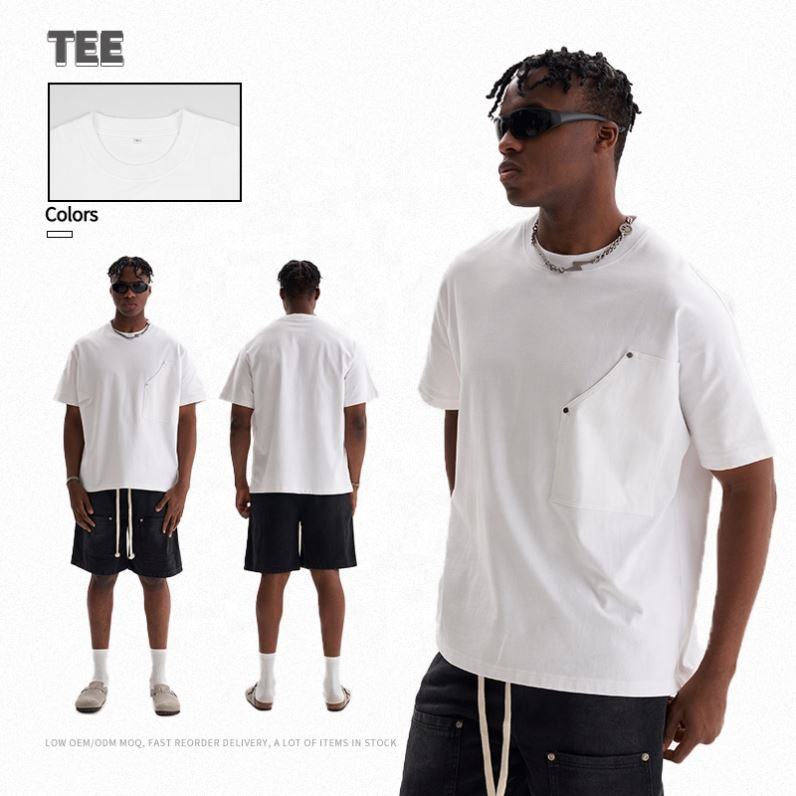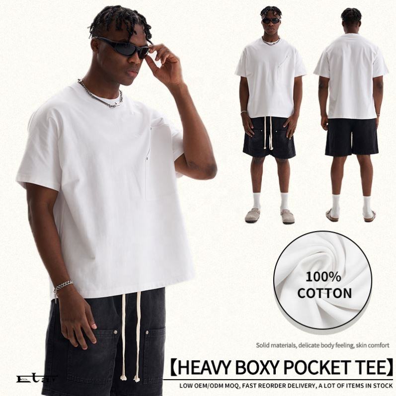 Heavy Weight Cotton Fabric Boxy Pocket Unisex t Shirt Oem Custom logo Print Blank Box Fit t Shirt
