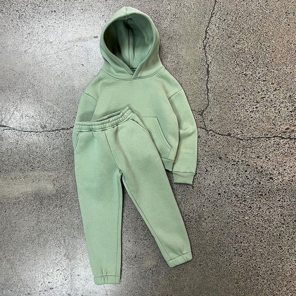 Heavy Weight Kids Fleece Tracksuit French Terry Sweatsuit Warm Chenille Patch Solid Color Winter Matching Plain Track Suits