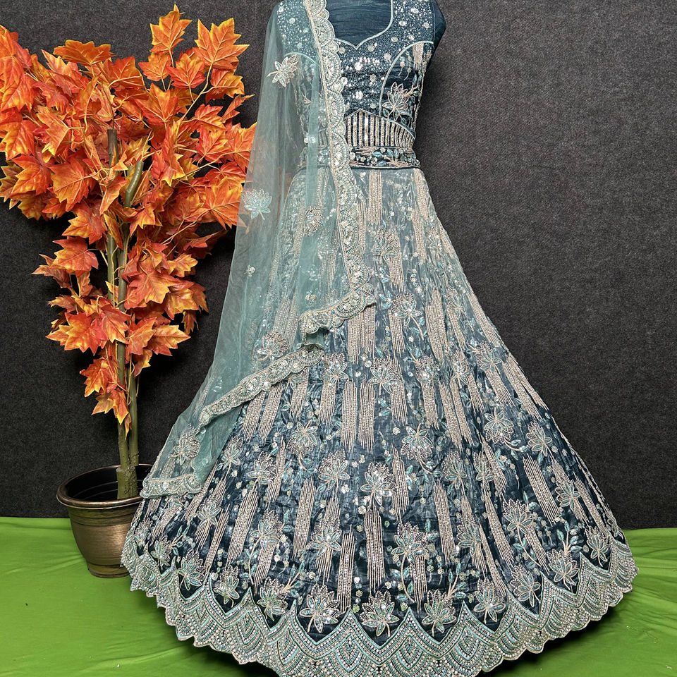 Heavy Work Lehenga for Bridal Events Embroidery Sequins Zari Long Skirt Net Dupatta Traditional Party Wear Set