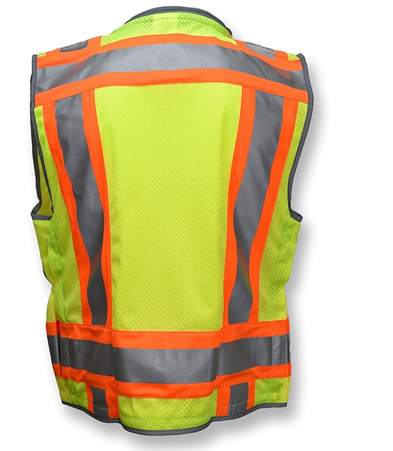 Heavy Woven Two Tone Engineer Vest with Padded Neck to Support Extra Weight in Cargo Pockets