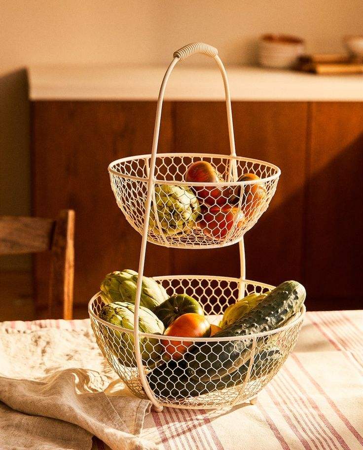 Nordic Style Pedestal Fruit Bowl - Elegant Red Wire Mesh Fruit Holder Hollow Out Metal Fruit Basket Centerpiece for Dining Table