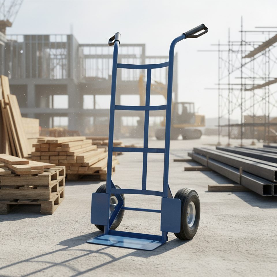 Heavy duty steel hand truck trolley with pneumatic wheels for warehouse industrial material handling