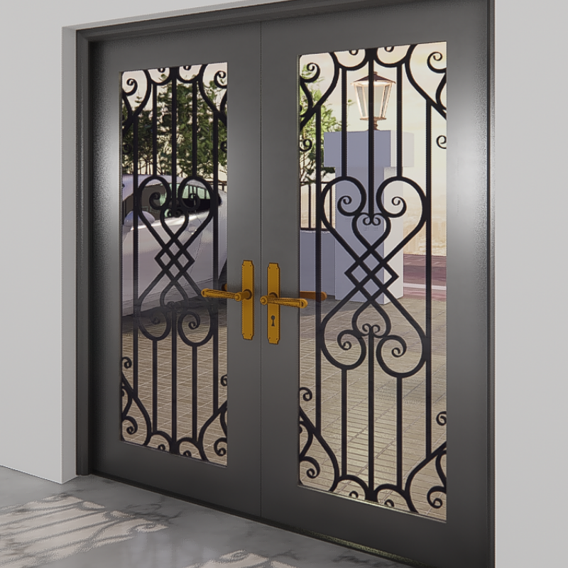 Heavy-duty wrought iron front doors with sliding or hinged option smart lock system steel frame and luxury handles set