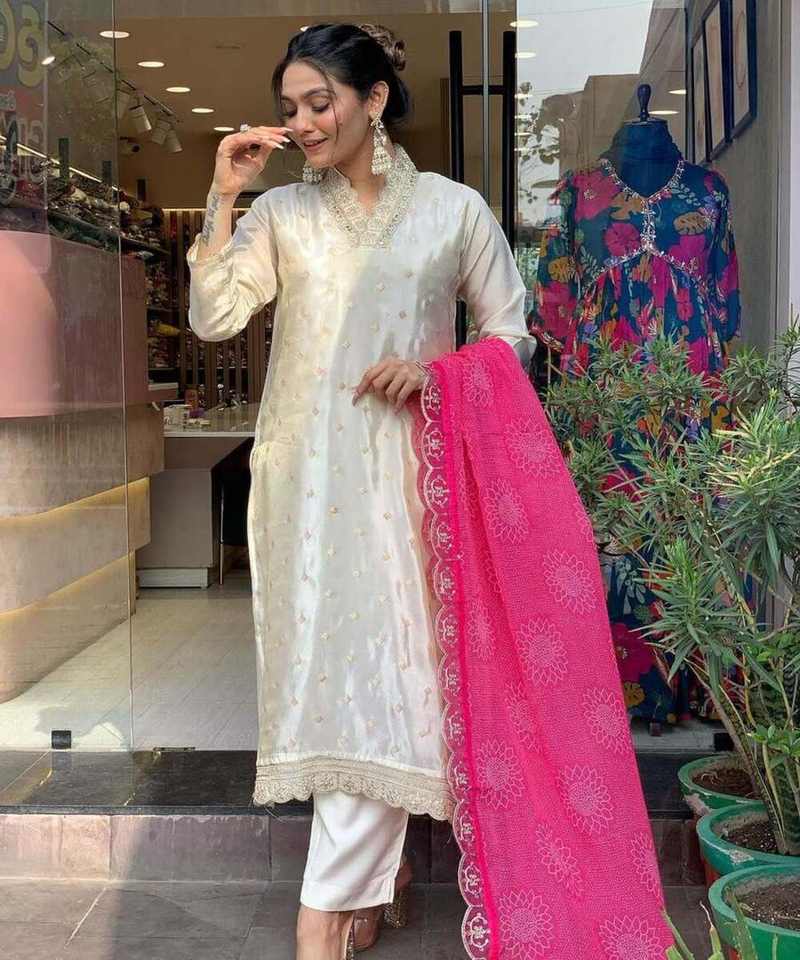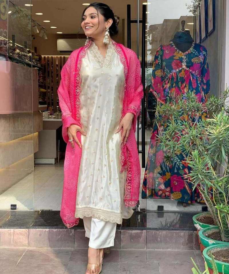 Traditional Elegant Cotton Anarkalisalwarkameez Suit Ladies 3 Piece Indian Pakistani with Dupatta