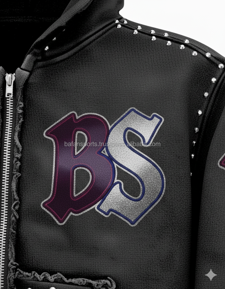 Heavy fleece zipper hoodie 400 GSM thick winter fabric soft brushed inside black color custom chenille embroidery basics hoodies