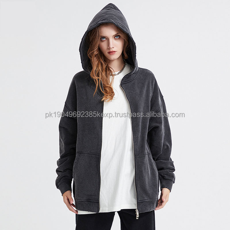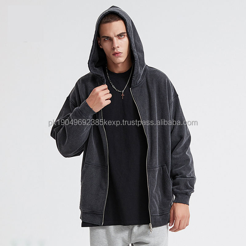 Heavy pound 420g wool ring zipper hoodie pure cotton made old retro edging damage hoodies unisex