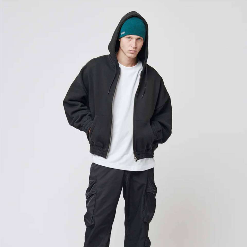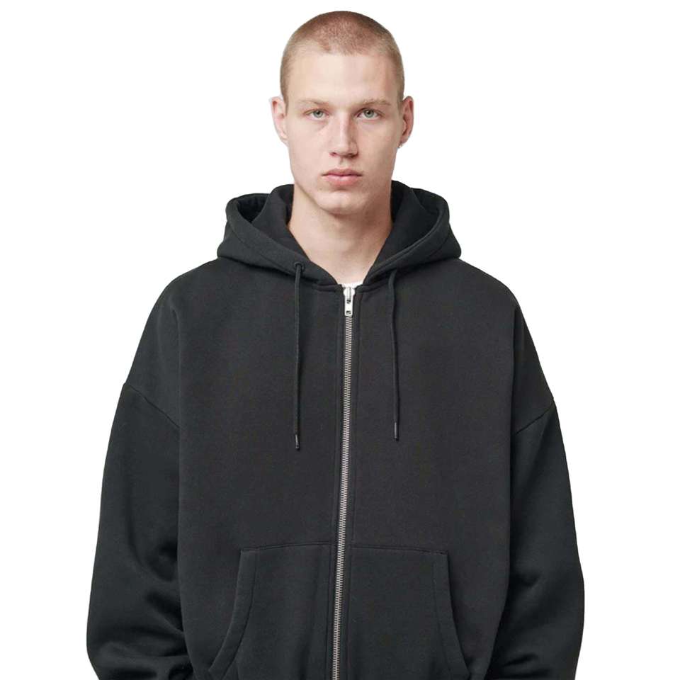 Heavyweight 100% Cotton Plain Hoodie Double Zipper Oversized Zip 430 Gsm Fleece Boxy Fit Anti-Shrink Puff Printing Black 6XL