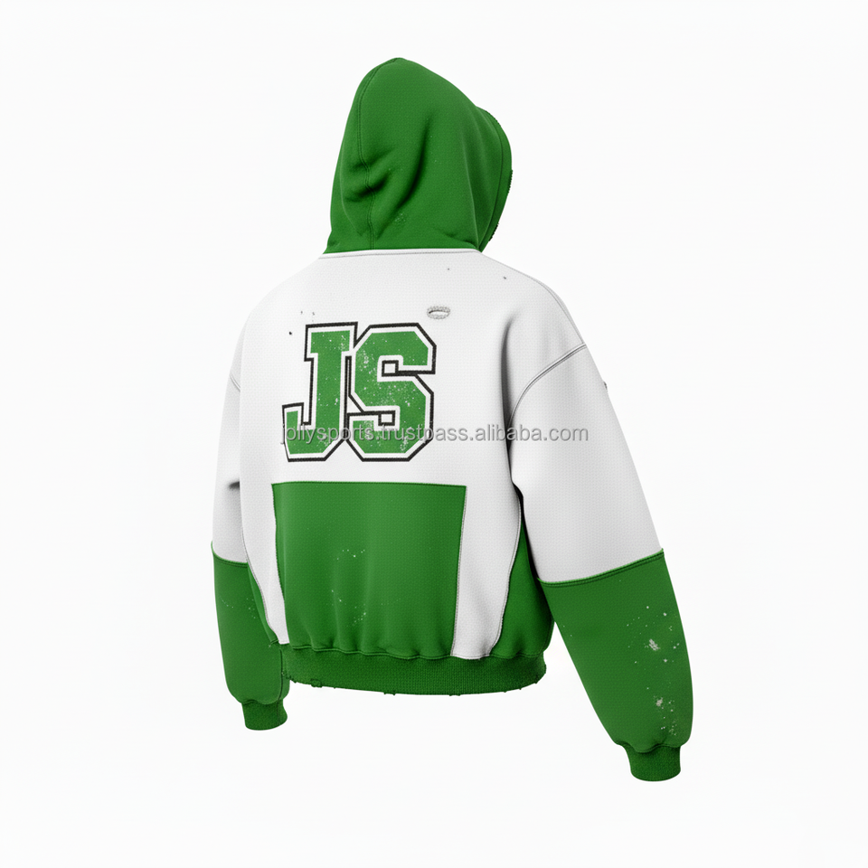 Heavyweight 380 GSM Brushed Fleece Zipper Hoodie Two Tone Green White Custom Embroidered Logo Streetwear Basics Zipper Hoodie