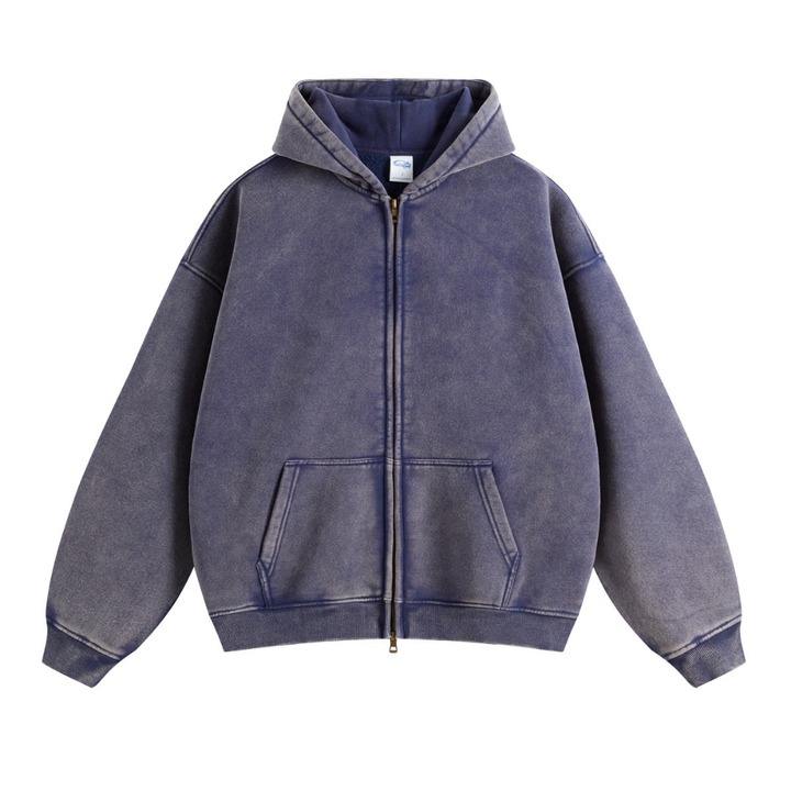 Heavyweight 400gsm Acid Wash Sun Faded Rhinestone Cropped Boxy Fit Zip up Hoodie
