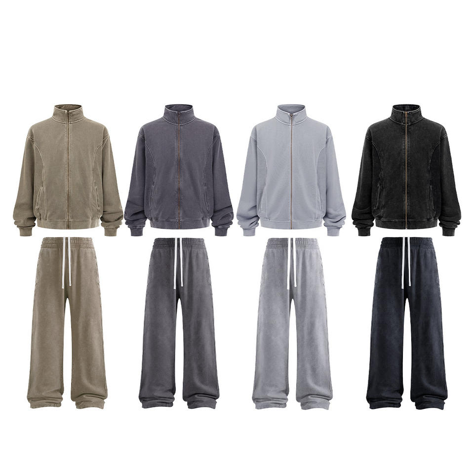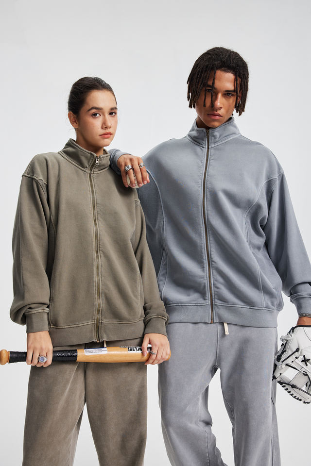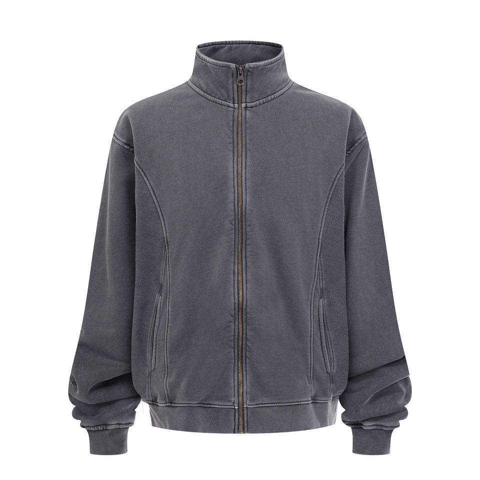 Heavyweight 430gsm Cotton French Terry Hoodie High Quality Custom YKK Zipper Washed Patchwork DTG Embroidery Print Stand Collar