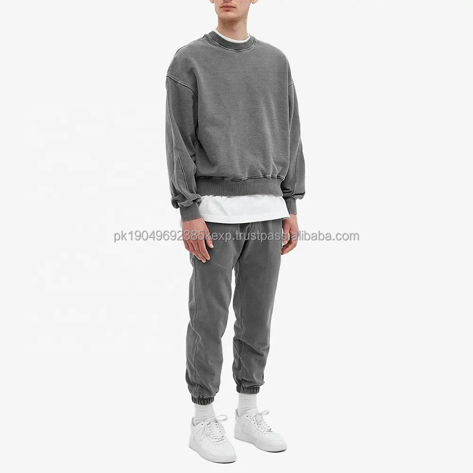 Heavyweight 500GSM French Terry Crewneck Sweatshirt Washed Black Vintage Design 3D Print Embroidered Winter Latests