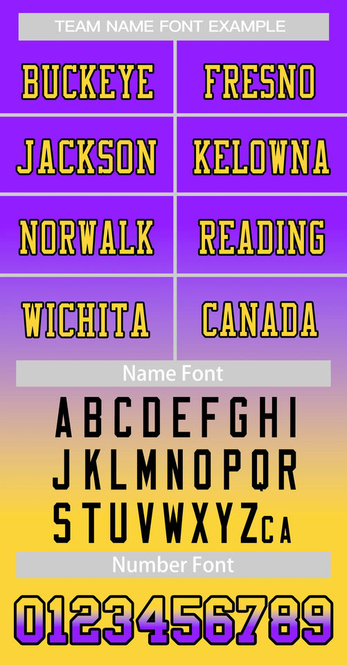 Print, Letter, Solid, Gradient Color, Player Name, Team Name, Team Numbers
