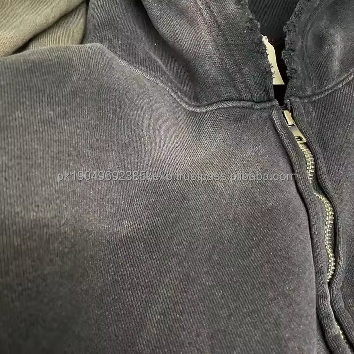 Heavyweight Cotton Mens Vintage Washed Hoodies Acid Washed Zip Up Hoodies 3D Puff Printing Hoodie For Men