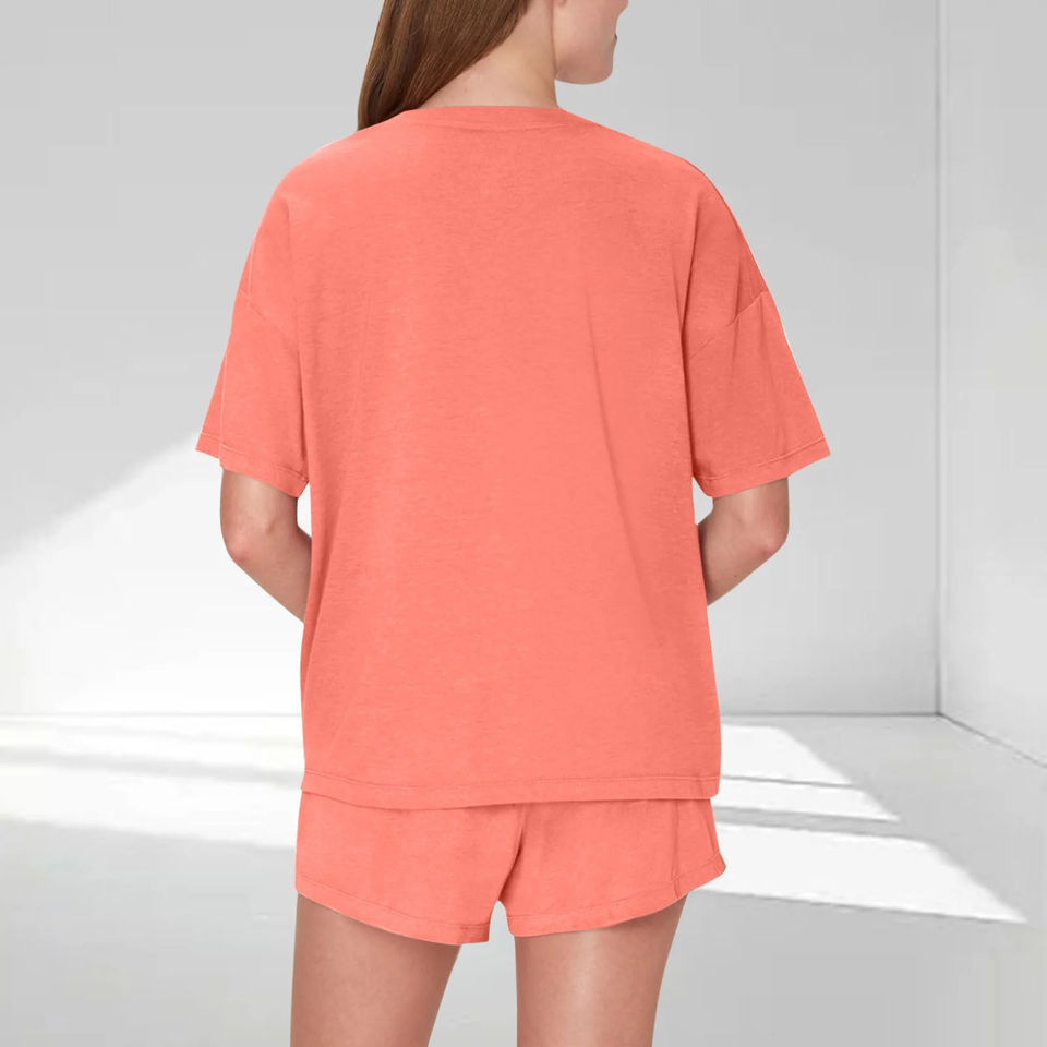 Heavyweight Custom Logo Printed Women's Sets 100% Cotton Drop Shoulder Casual Oversized T Shirt And Short 2 Piece Set Women