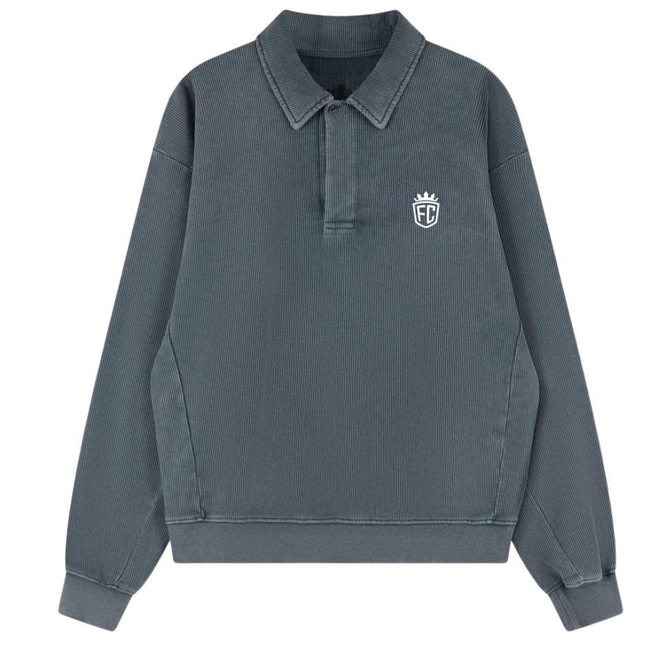Heavyweight Grey Washed Ribbed Polo Sweatshirt and Jogger Set for Men Cotton Streetwear Sweatpants with Ribbed Collar Fashion