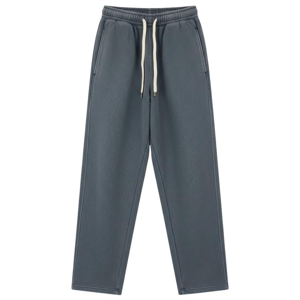 Heavyweight Grey Washed Ribbed Polo Sweatshirt and Jogger Set for Men Cotton Streetwear Sweatpants with Ribbed Collar Fashion