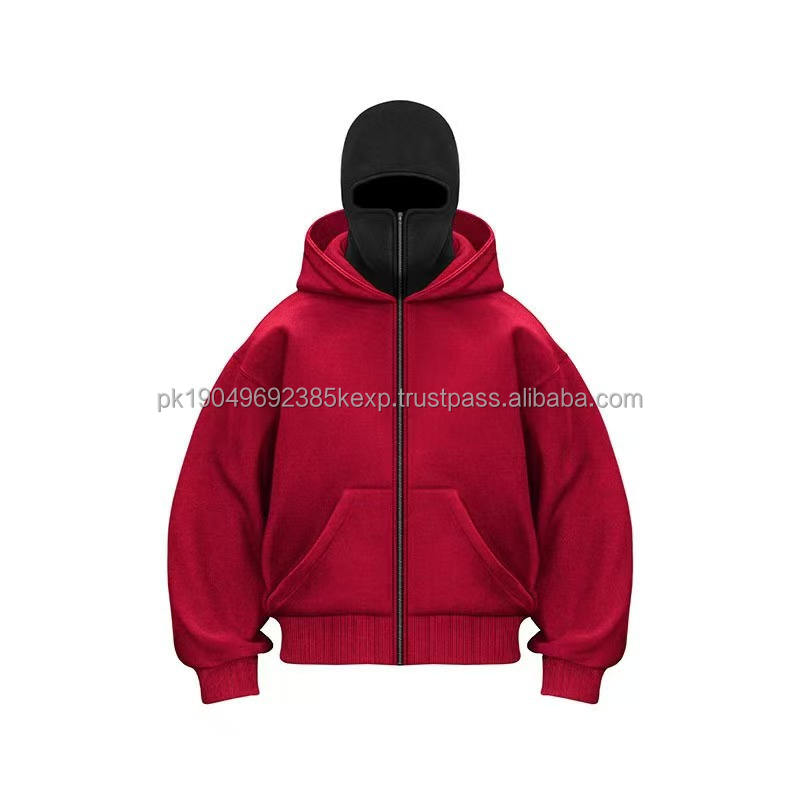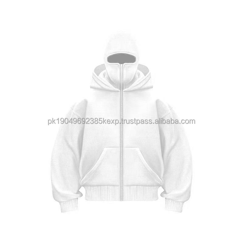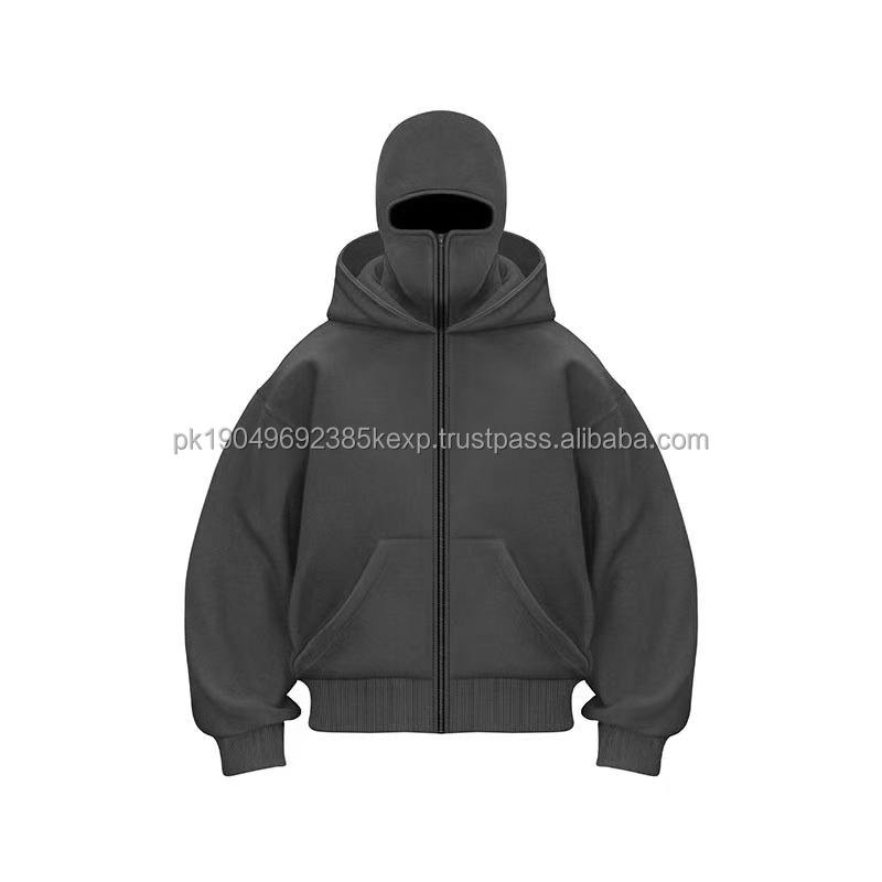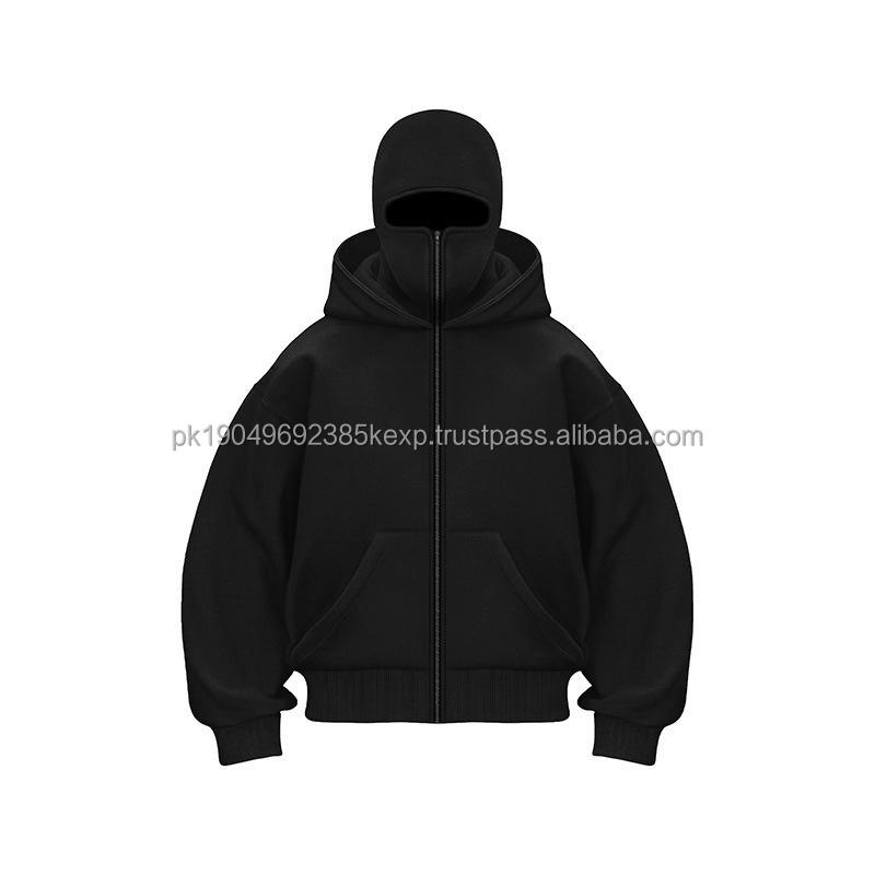 Heavyweight Hooded Streetwear Sweatshirt Custom logo Balaclava Full Zipper Double Hood Solid Outwear Vintage Zip up Hoodie Men
