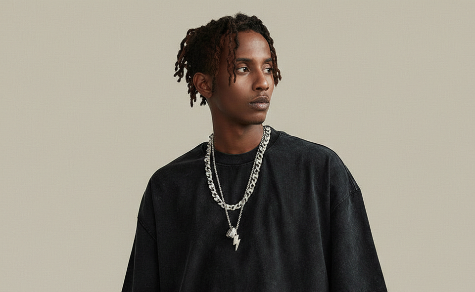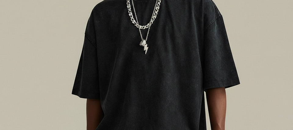 Heavyweight Knitted Cotton Solid Vintage Black T-Shirt | Acid Wash Oversized Crew Neck Distressed Mens Tee Wholesale