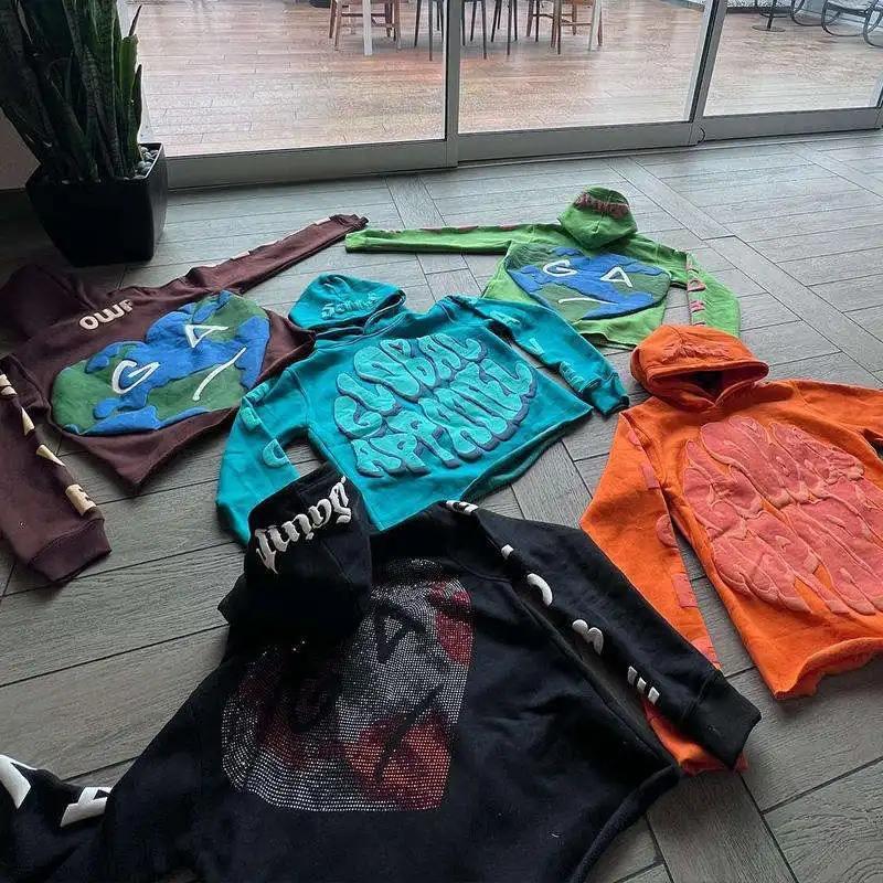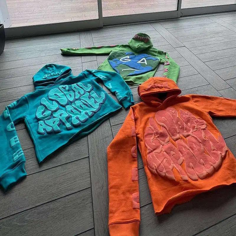 Heavyweight Men's Cropped Hoodie Winter Cotton French Terry Pullover No String Plain Raw Hem Bulk Manufacturers' 3D Puff Fleece