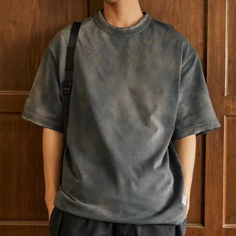 Heavyweight Oversized Tshirt | Acid Washed Distressed Tee | Rib Neck Streetwear Blank | High Quality Mens Custom Shirt