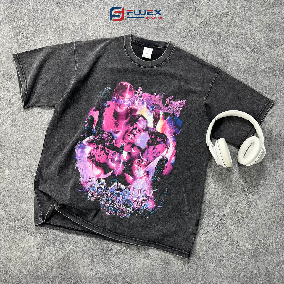 Heavyweight Men's Graphic Boxy Cropped Fit T-Shirts Casual Oversized Acid Washed Blank T-Shirt 100% Cotton Streetwear Style