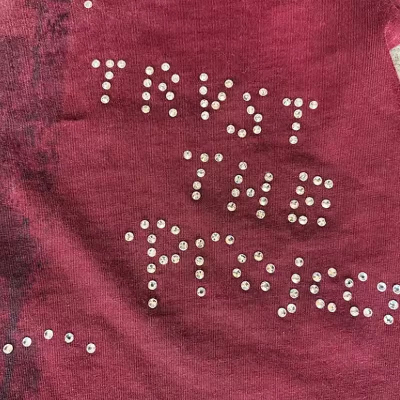Heavyweight Thick Sun Fade Vintage Rose Red Round Neck with Rhinestone Dtg Graphic Tee Shirt Distressed T-shirt
