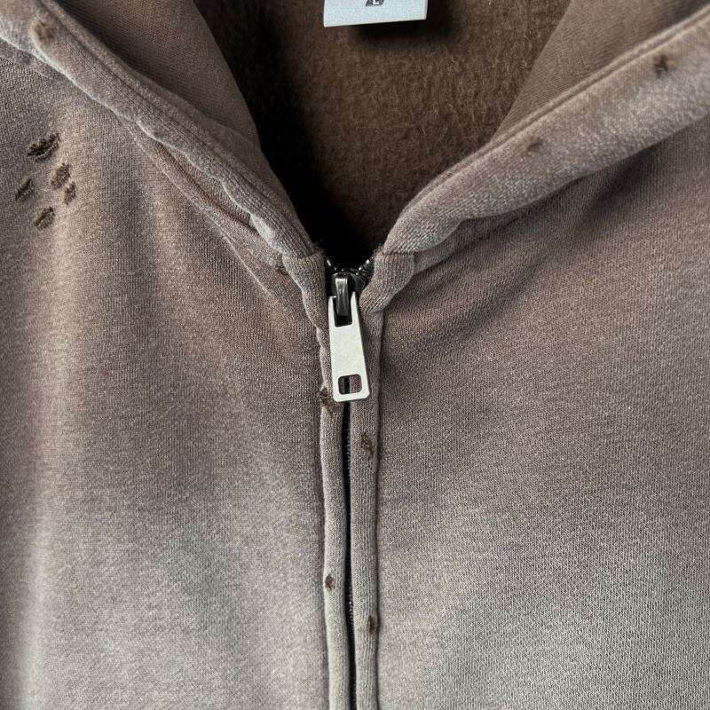 Heavyweight Vintage Acid Washed 100% Cotton Zip Up Hoodie | 420g Distressed Custom Plain Sweatshirt for Men