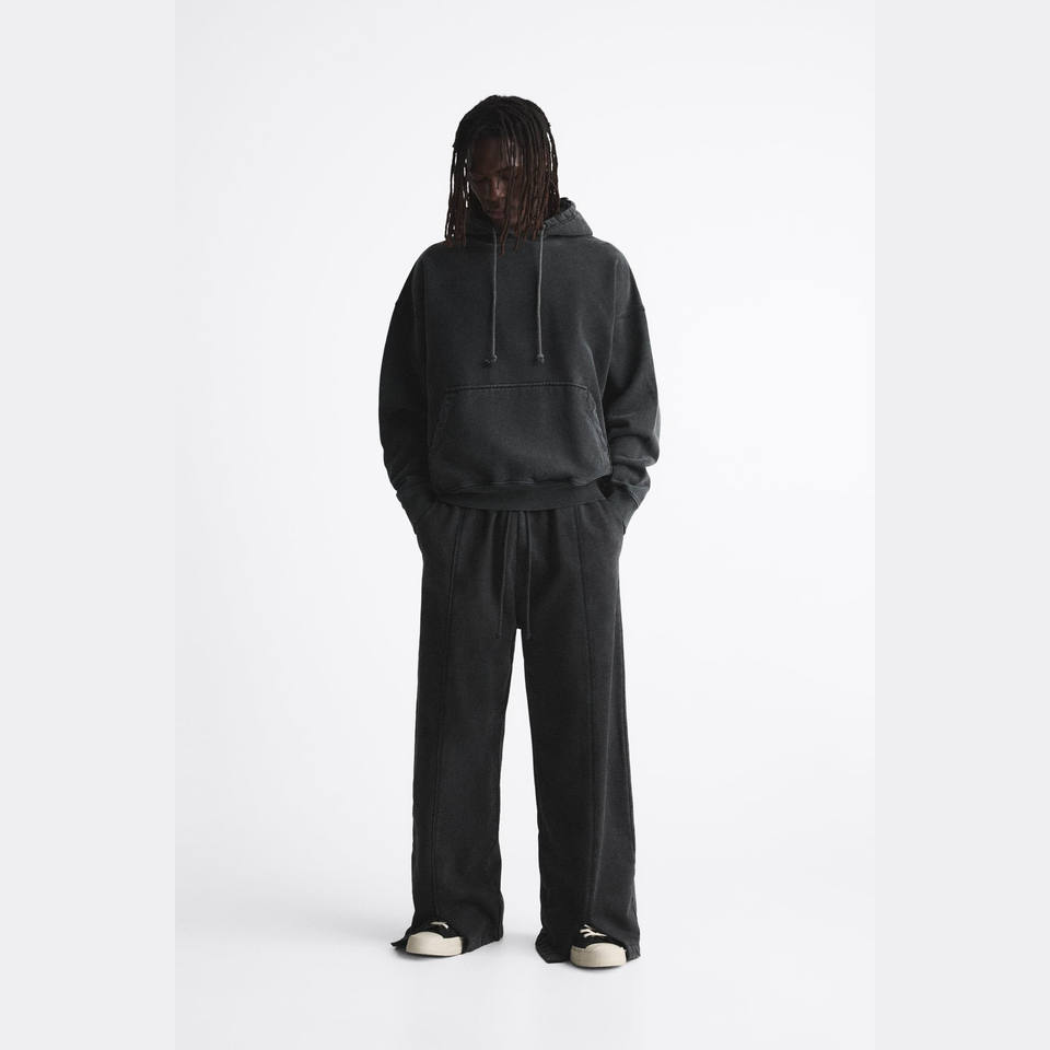 Vintage Heavyweight Acid Wash Tracksuit for Men Sun Faded Distress Sweat Suit Drop Shoulder Hoodie Flare Pant Printed Plus Size