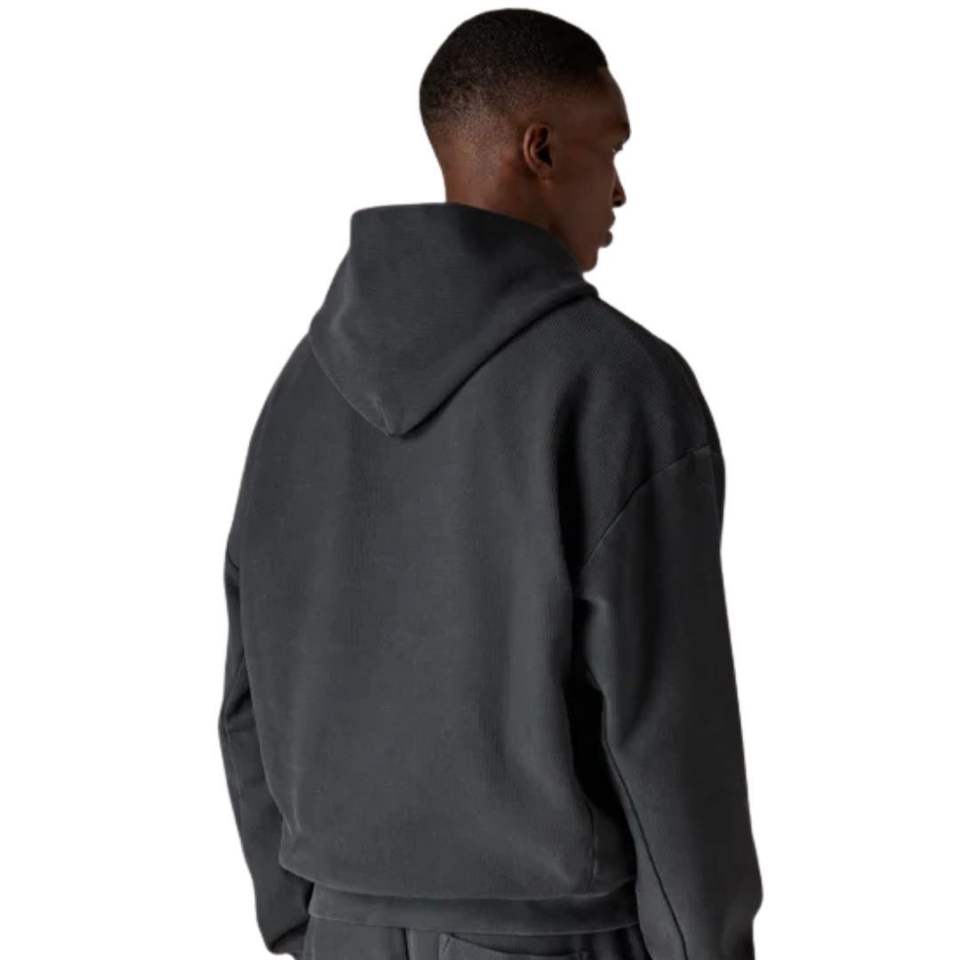 Heavyweight Washed Ribbed Hoodie for Men Cozy Comfortable Navy Hoodie with Front Pocket Premium Quality Hoodie for Men
