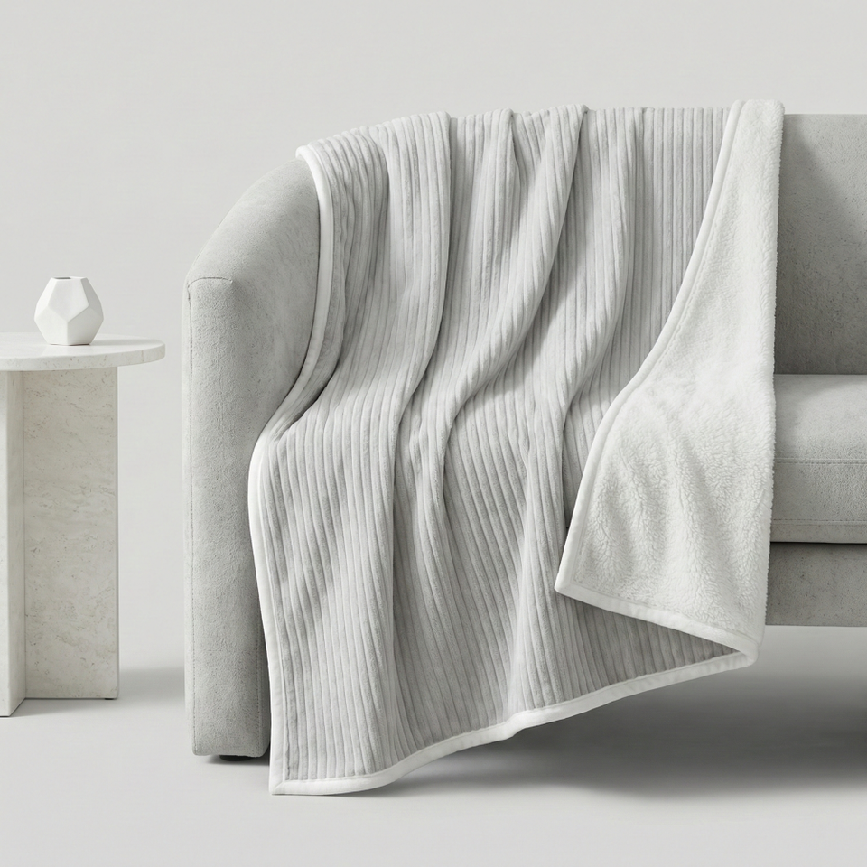 3D Jacquard Ribbed Striped Flannel Fleece Bonded Shu Velveteen Blanket