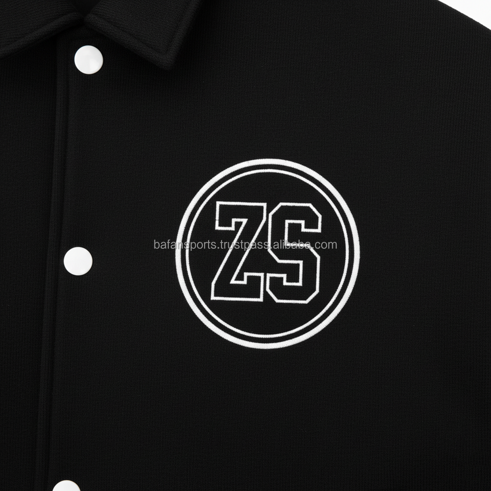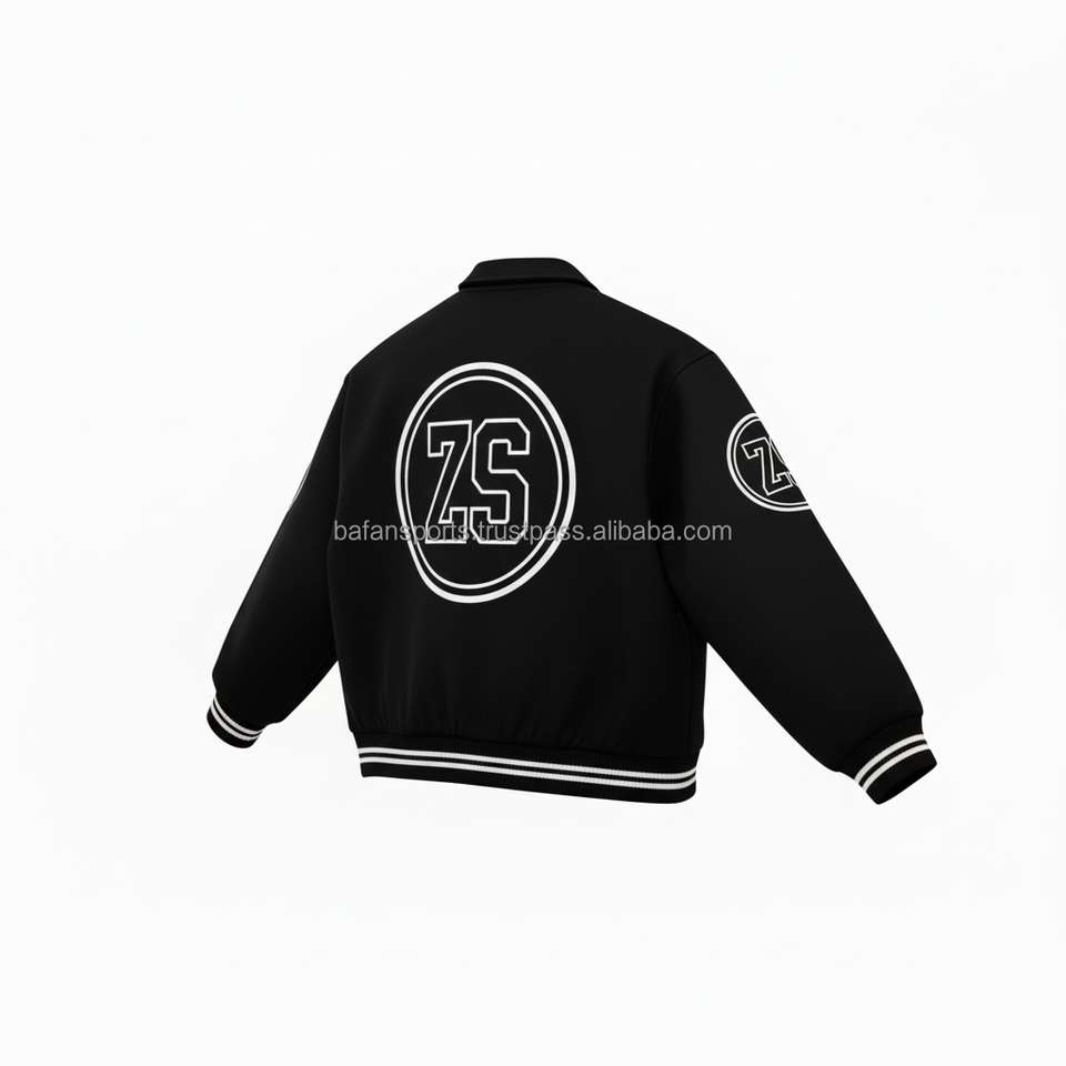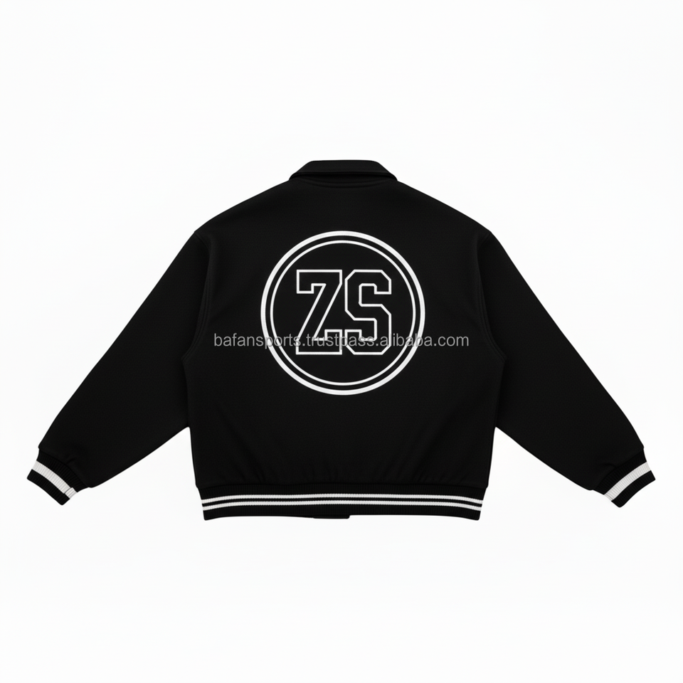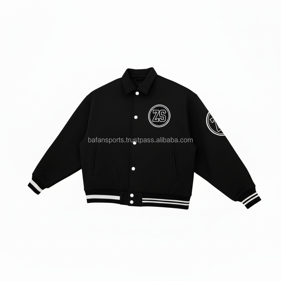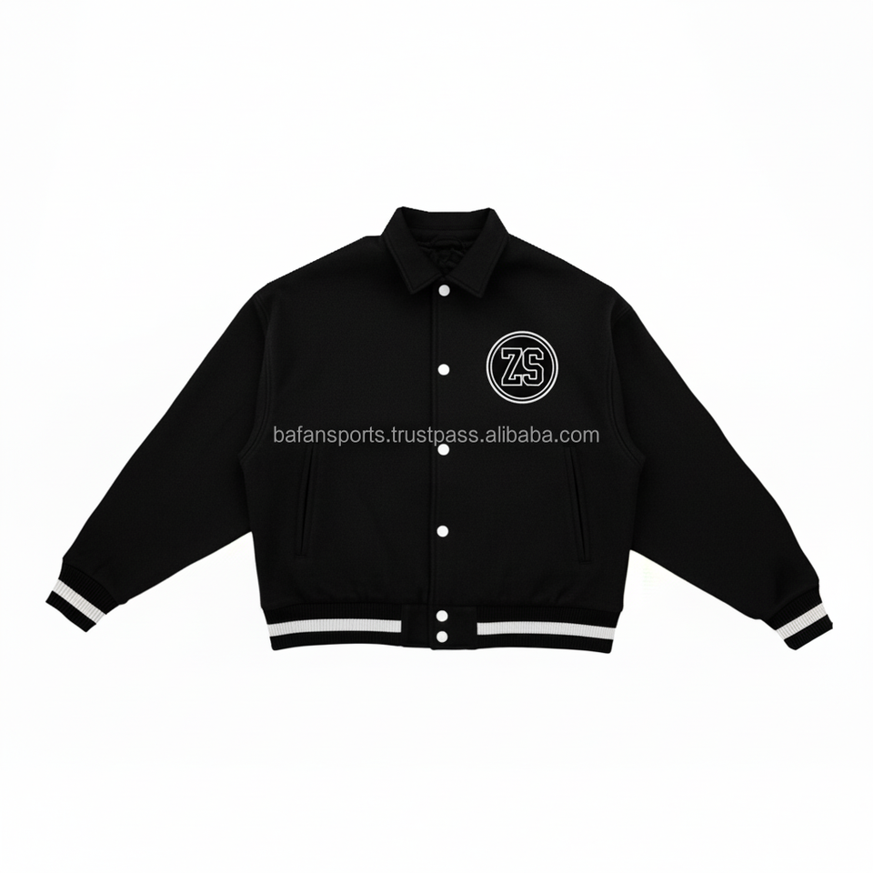 Heavyweight Wool Varsity Jacket Black White Contrast Trim Custom Embroidery Logo Design Durable Wear Varsity Jacket for man