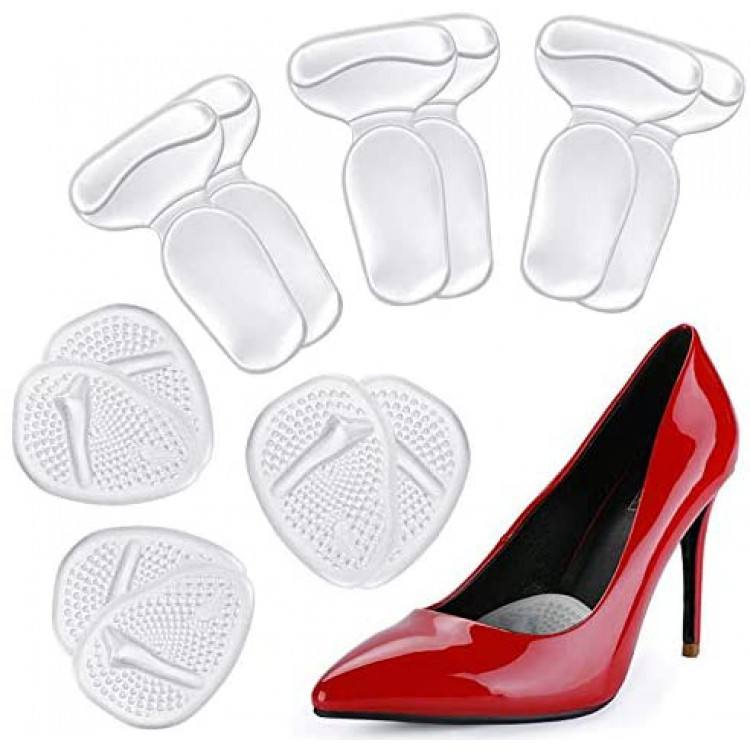 Heel Cushion Inserts and Metatarsal Pads for Women, 3 Pairs Heel Grips and 3 Pairs Ball of Foot Cushions, Silicone Shoe Pads