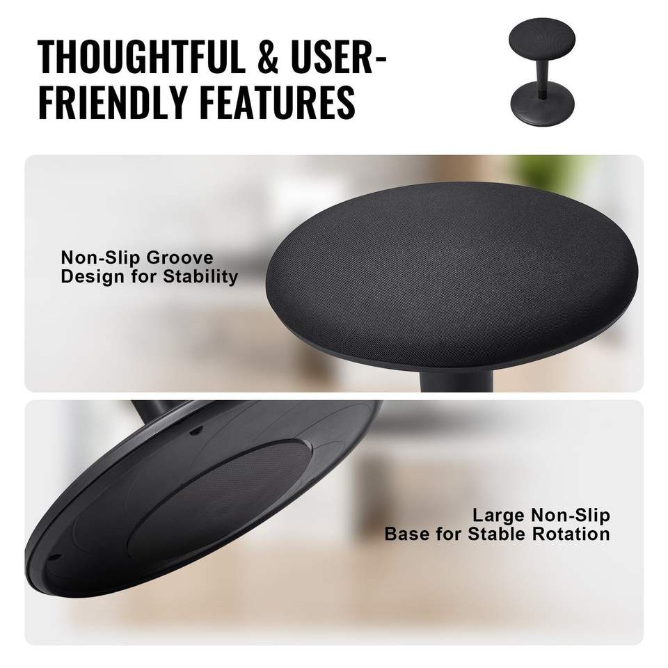 Height-Adjustable 21.7-28.3\" Wobble Chair Flexible Seating 8° Tilt Angle Black Iron Wobble Stool for Schools Office Home