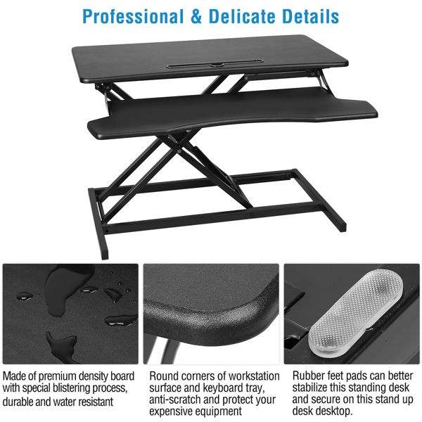 Height Adjustable 31.3-Inch Standing Desk Dual Monitor Workstation Laptop Compatibility Sit-Stand Converter Tabletop Computer