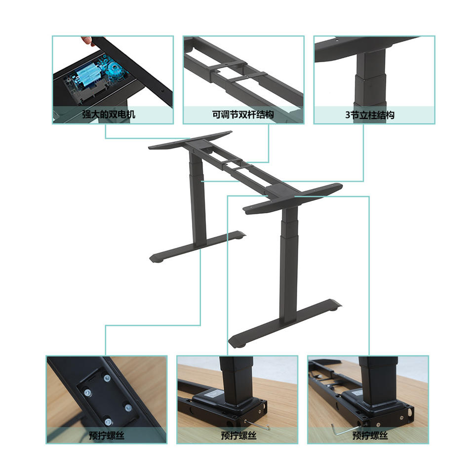 Height Adjustable Computer Desk Metal Frame Dual Motor Quick Assembly Home Office Use 65-125cm Lift Range CE Certified