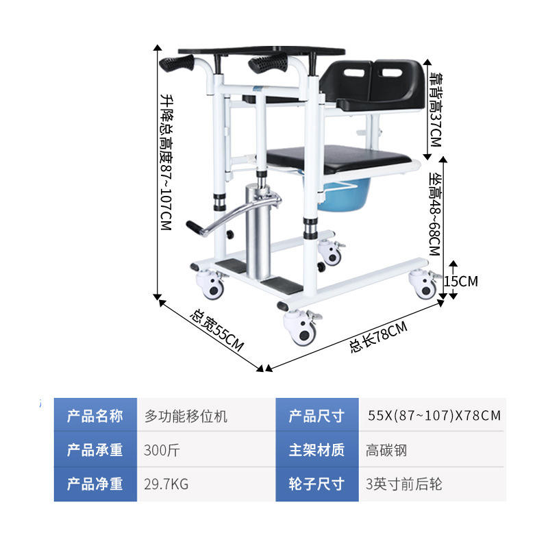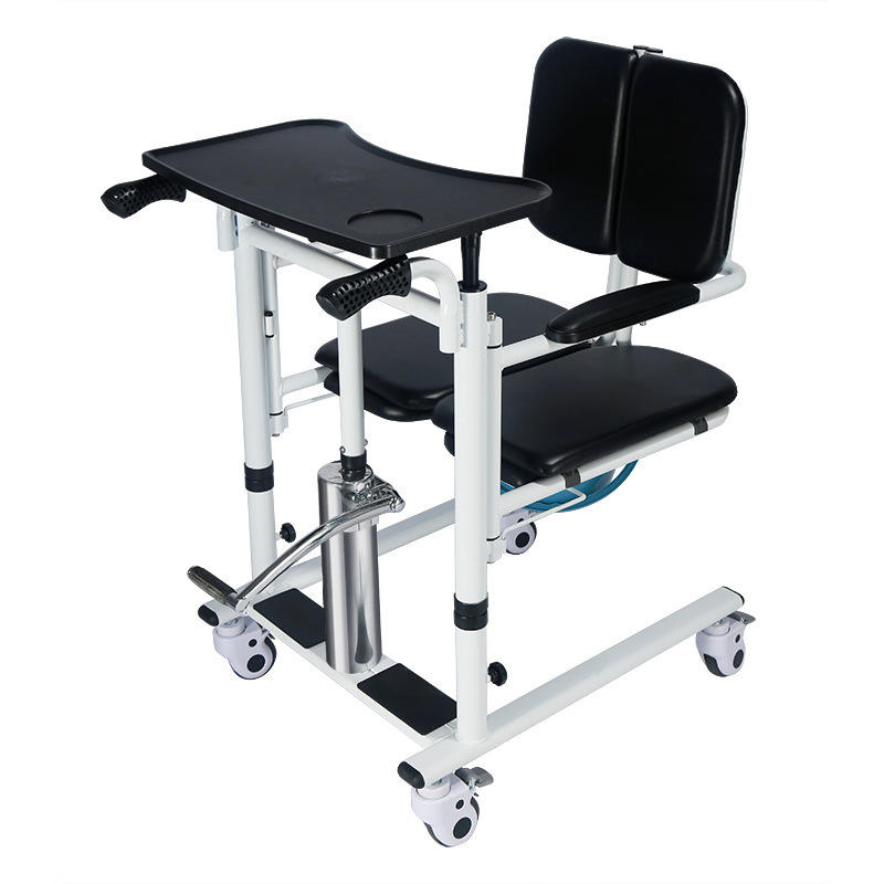 Height Adjustable Wheeled Commode Chair With Tray For Disabled Elderly Home Care Transportation 304 Stainless Steel