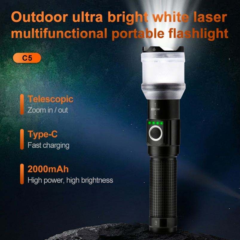 WOSEN Multifunction White Laser Outdoor Emergency Work Camping Light Zoomable Rechargeable LED Torch Convoy Tactical Flashlight