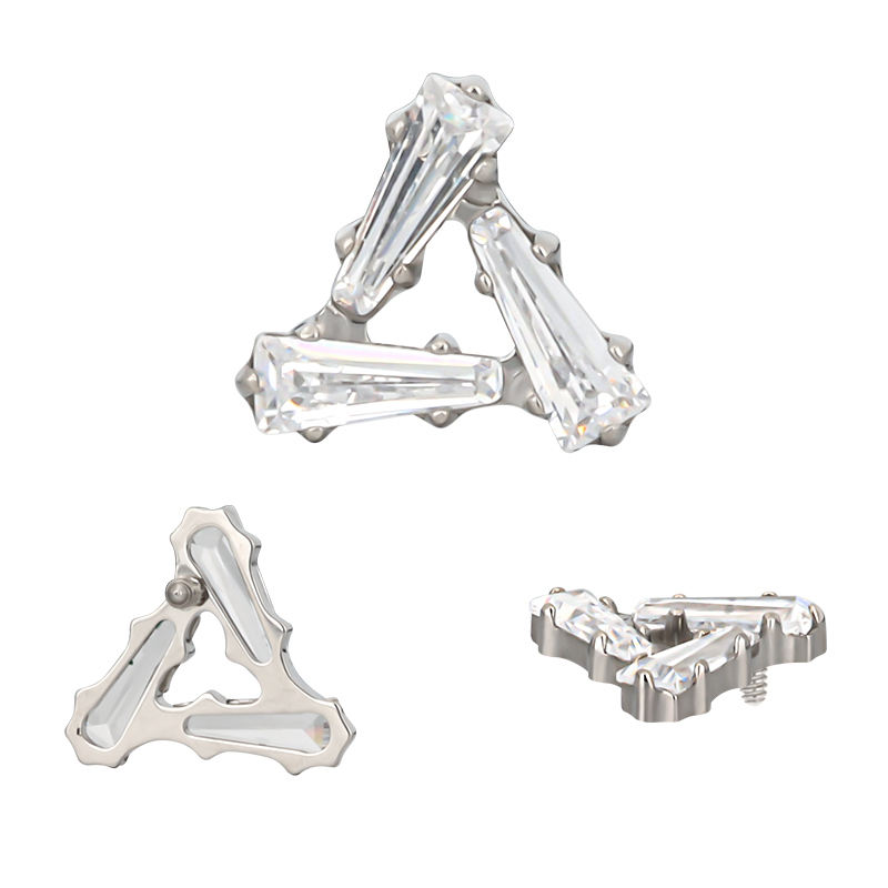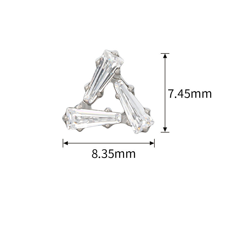 Wholesale Helix Titanium 3 Baguette CZ Triangle 16G Labret Ear Ring Body Jewelry with Zircon for Children's Wedding Engagement