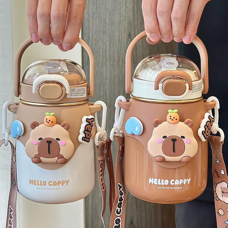 Hello Cappy Children's Insulated Water Bottle 500Ml With Straw And Strap For School Use