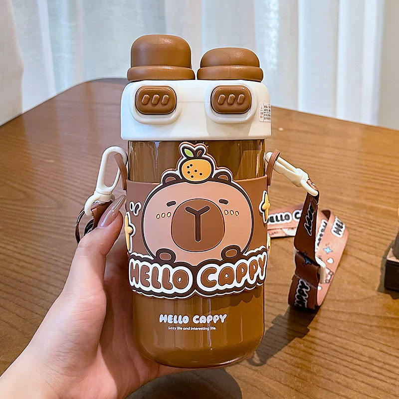 Hello Cappy Dual-Drink Insulated Water Bottle 500Ml Reusable With Strap For Kids School Use