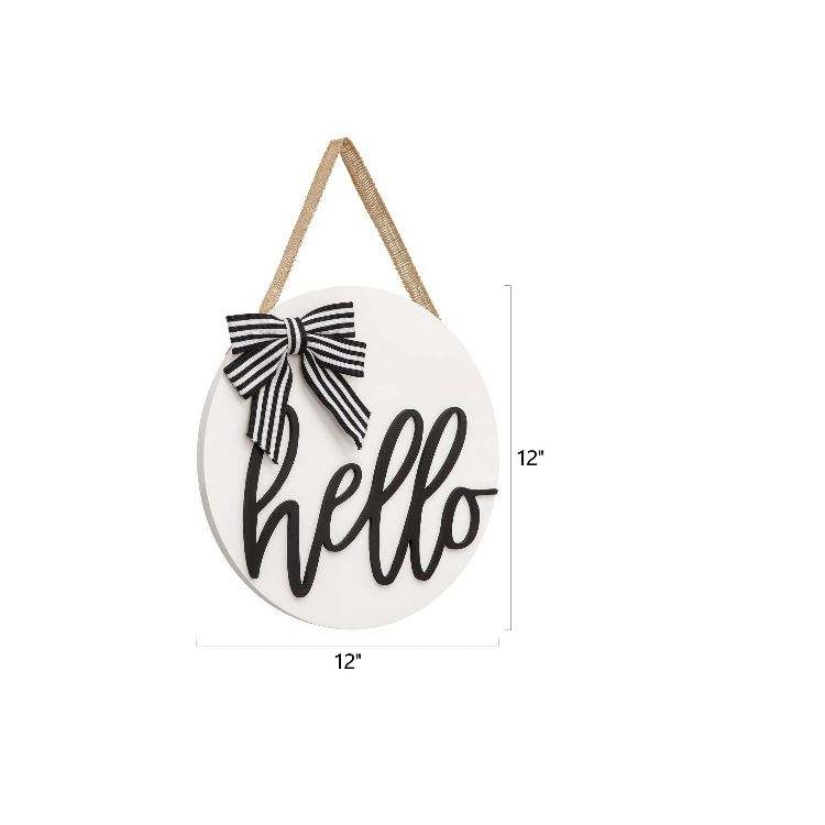 Hello Painted Cherrywood Round Hanging Wreaths Signs for Rustic Farmhouse Front Porch Christmas Decorations Durable