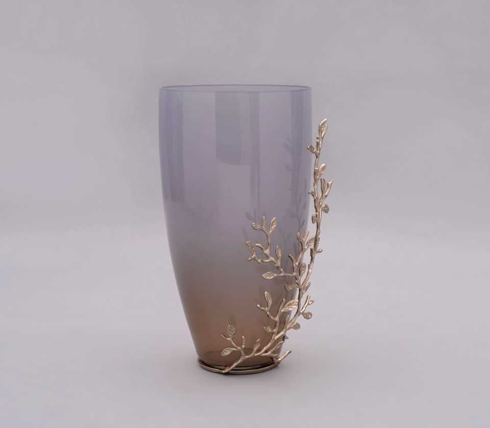 Helm of Heron Bud Vase Elegant Pink Glass Vase with Metal Butterfly & Floral Embellishment Luxury Decorative Flower Vase