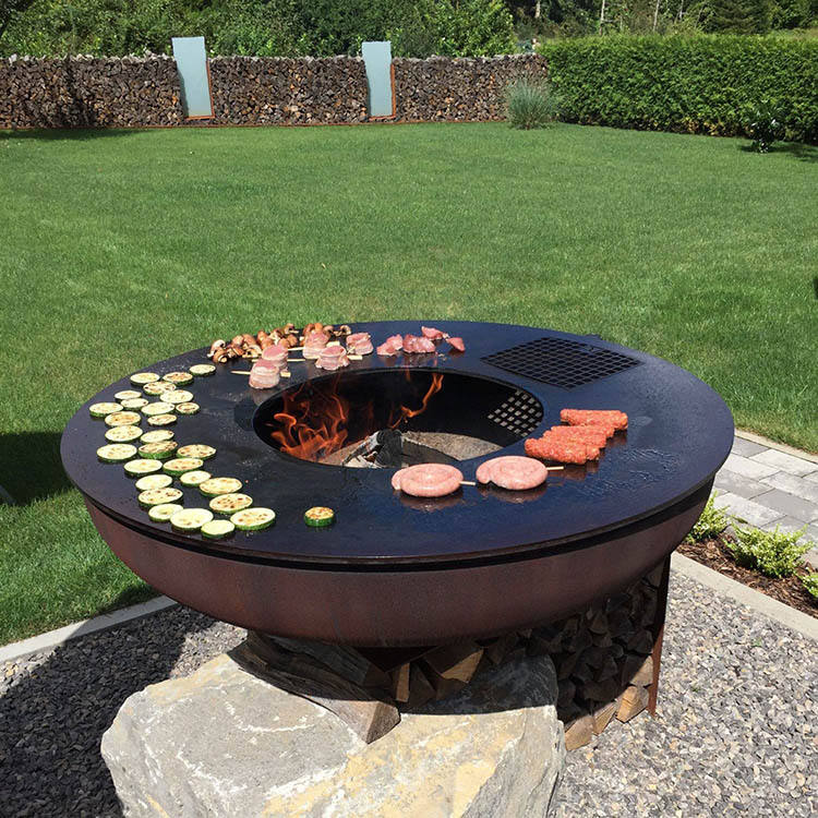 Hemispherical Corten Steel Firewood BBQ Grill-Rustic Outdoor Bowl Design with Ventilation For Outdoor Cooking