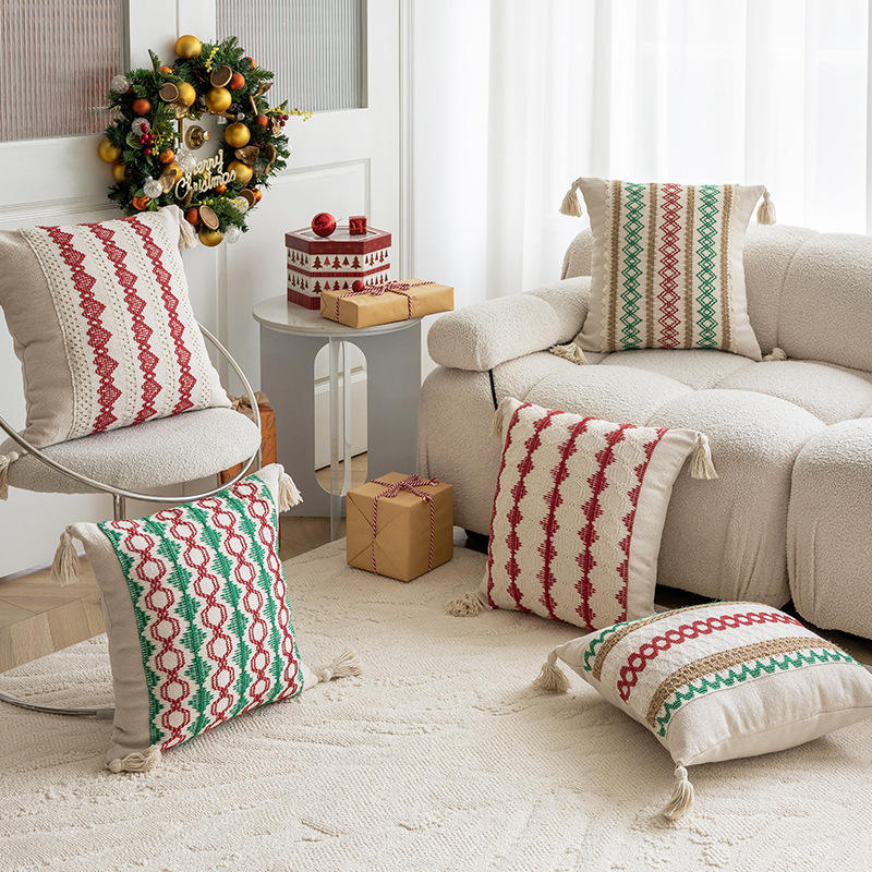 Hemo Christmas Jacquard Sofa Cushions Rectangle Cotton Filling Washable Minimalist Style Decorative Throw Pillows